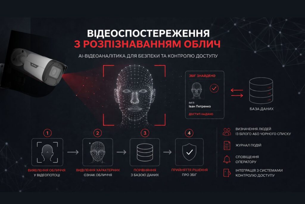 Сучасні системи відеоспостереження вже давно виконують не лише функцію запису відео. Завдяки алгоритмам штучного інтелекту камери можуть аналізувати відеопотік, виявляти людей, транспорт і навіть ідентифікувати конкретну особу.
